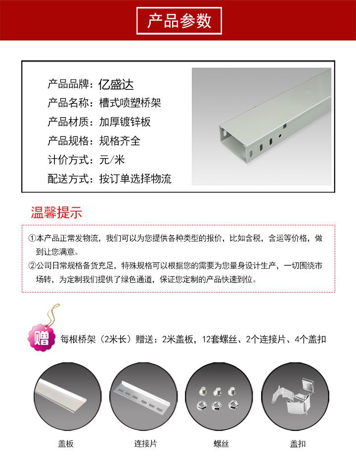 聯系人:杜經理 座機:0631-5982229 聯系方式:13176305866(橋架) 15698215066(電工套管) 地址:威海市環翠區西山口工業園